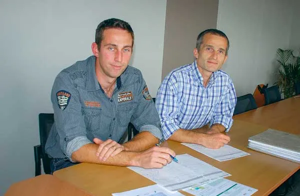 Anthony Baslé, consultant qualité du lait et robot Eilyps (à gauche) et Loïc Quéméré, directeur technique Eilyps.[/caption]