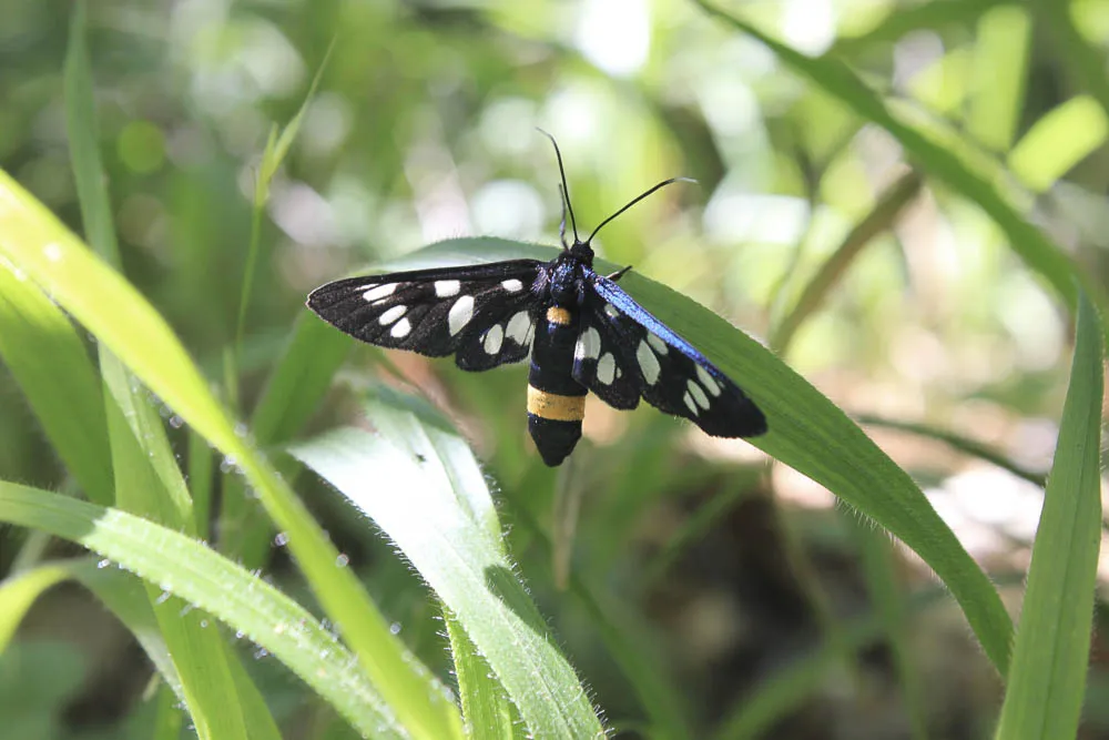 Mais, placé sous la lumière des projecteurs de la curiosité, l’hôte aux mœurs nocturnes tord vite le cou au sombre préjugé qui voudrait que, la nuit, tous les papillons sont gris. Les papillons de nuit arborent en effet des nuances de couleurs subtiles de gris et de vert, de gris et de rose. Voire de rouge et de noir profonds comme s’habille la Goutte-de-sang, un papillon crépusculaire actif aussi le jour. Ou encore l’Écaille-marbrée en tenue de grand soir, trompe ocrée en guise de nœud-papillon et ailes carmin de pied en cape. De nombreux noms vernaculaires évoquent d’ailleurs cette beauté masquée par le manteau de la nuit : Crambus perlé, Phalène soufrée, Ruban fauve, Brocatelle d’or, Zygène cendrée, etc.