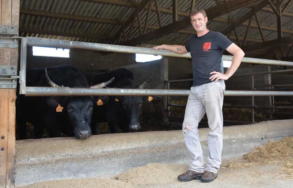 « J’ai passé 3 ans au Japon où j’ai exercé différents boulots, notamment dans des exploitations agricoles. J’y ai découvert la race Wagyu avec laquelle on fait le fameux bœuf de Kobé. Sa viande persillée ressemble plus à du thon qu’à de la viande bovine. Au-delà du goût inimitable de cette viande, c’est le caractère de la race, utilisée à l’origine pour tracter le matériel dans les rizières, qui m’a séduit. Ce sont des vaches calmes, paisibles, mais avec un instinct maternel fort qui s’estompe au bout de 3 jours. En fait, c’est une Limousine déguisée en noir. »