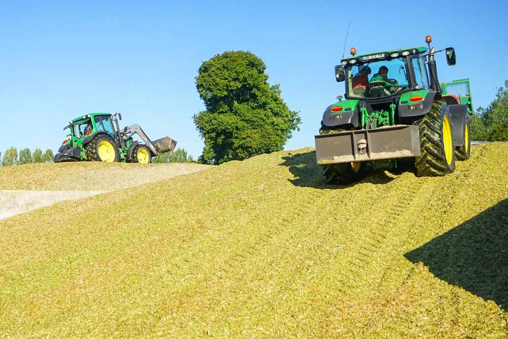 Au total, ce sont pas moins de 11400 kg qui se promenaient sur le silo, de quoi chasser efficacement l’air présent dans le maïs et lui assurer une bonne conservation.
