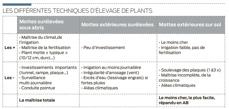 Être producteur de ses plants de choux, une solution efficace pour diminuer ses coûts d’implantation. C’est ce qu’ont pu remarquer des producteurs de légumes lors de deux journées de présentation, dans le cadre des portes ouvertes Innov’Action organisées par la Chambre d’agriculture en juin dernier. « Trois techniques sont utilisées pour élever ses plants : les mottes peuvent être surélevées sous abri, surélevées en extérieur ou enfin en mottes à l’extérieur directement sur le sol », résume Anthony Brulé, conseiller et animateur du comité de développement de la zone légumière de Saint-Pol-de-Léon (29). Chaque technique a ses avantages et ses inconvénients, sachant que la maîtrise est totale lors de l’utilisation d’un abri. C’est aussi la solution la plus pointue techniquement, et les investissements sont plus importants.
