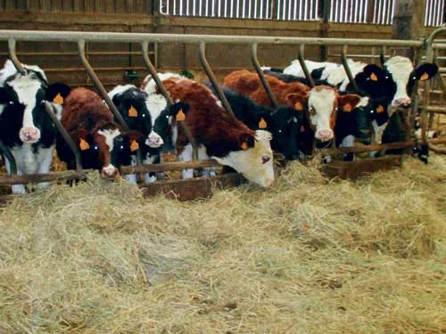 Le rendement en maïs est satisfaisant également. Pas de problème de maladie ou de sécheresse qui aurait pu limiter les rendements. Les 7 ha ont été ensilés le 26 septembre, avec un rendement moyen de 14 tonnes MS par ha. Les stocks d’enrubannage et de maïs ensilage sont réservés aux vaches. Une botte de foin est distribuée chaque semaine en libre-service aux vaches de décembre à mars, soit environ 16 bottes. Le reste est distribué aux génisses, dont la ration hivernale se compose uniquement de foin.