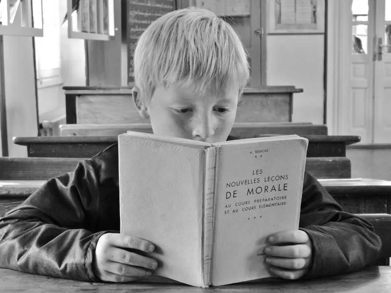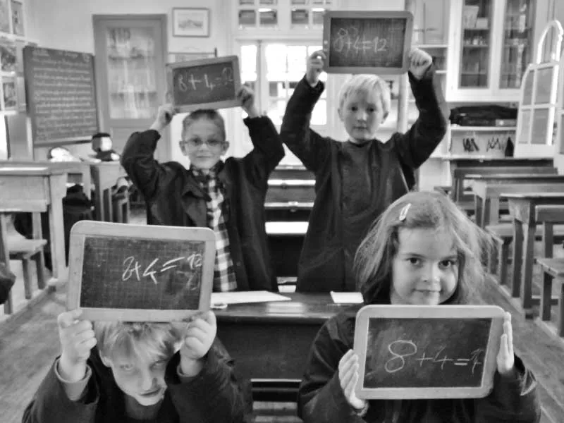 La cloche sonne. Les enfants s’alignent tous en rang, dans un silence de plomb. L’instituteur, surnommé le hussard noir depuis la IIIe République, à l’image de ses vêtements sombres et austères, les impressionne. Ils entrent dans la salle unique qui accueille tous les enfants du village, âgés de 6 à 14 ans. Ils se dévêtent de leur cape noire en drap de laine pour enfiler leur blouse. Malgré la fraîcheur du dehors, la salle est réchauffée. Dans le poêle à bois, le feu crépite. Les enfants de la campagne, qui sont partis tôt à pied de chez eux pour être à l’heure, l’ont déjà rallumé. Dans la journée, les écoliers iront à tour de rôle chercher le bois, apporté par les familles en début d’année et stocké sous le préau.