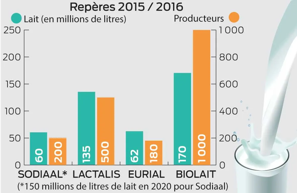 Les gammes de produits transformés s’élargissent. Eurial mise sur le développement de l’ultra frais et du beurre sur un marché local, produit de la poudre pour quelques marchés et mise sur la mozzarelle. Sodiaal démarre la production de lait infantile bio. Cette activité devrait représenter 50 % de la production de lait bio de la coopérative à terme. Lactalis poursuit sa progression sur le marché des GMS et cible la restauration hors domicile et les drives. Biolait collecte et vend le lait à des transformateurs (pas d’outils industriels), y compris à l’étranger pour une faible part. Aucun de ses clients ne peut acheter plus de 20 % de la production pour éviter une trop forte dépendance.