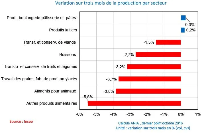 Production alimentaire France : net repli en 2016