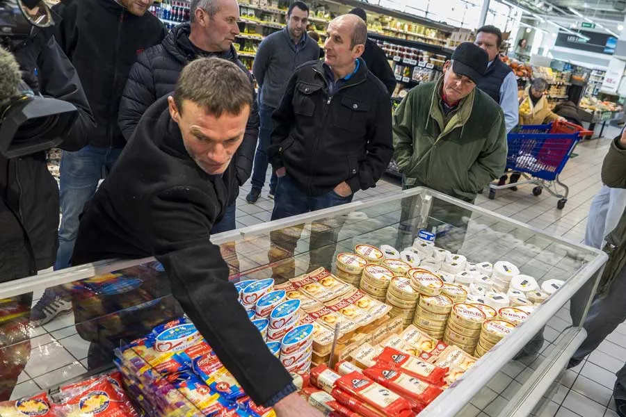 Les représentants syndicaux, accompagnés des employés de l’hypermarché, se sont ensuite rendus dans le magasin pour sortir des rayons les produits en promotion. Pour la suite des actions, les laiteries semblent clairement ciblées.