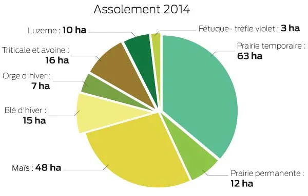 Suite aux échanges en groupe, il a revu le système global de l’exploitation, remis en pâture les parcelles proches des bâtiments (moins de céréales) et allongé sa rotation maïs-blé en introduisant de la luzerne et un mélange fétuque-trèfle violet. « L’objectif était d’augmenter l’autonomie alimentaire du troupeau (100 vaches), de réduire les traitements tout en maintenant les marges et le revenu ».