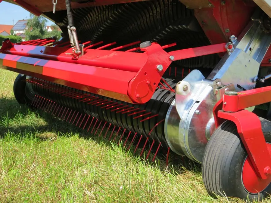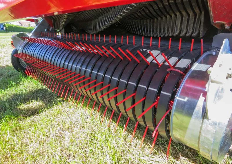 Le rouleau tasse-andain a lui aussi été amélioré pour optimiser le flux de fourrage. Des peignes en acier sont maintenant montées directement derrière le rouleau et dirigent le fourrage plus efficacement vers l’unité d’alimentation.