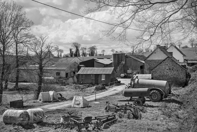 À travers des images en noir et blanc, « dénuées de contraste », il rend compte d’une « campagne fragile et paradoxale dont le caractère ancestral et immuable s’oppose à une mutation accélérée ». Des clichés suspendus, vides de toute présence humaine, à la composition équilibrée et à l’approche géométrique soignée. Un hommage teinté d’une certaine mélancolie à un territoire agricole détaché des grands centres urbains et des zones côtières plus touristiques. Un travail rassemblé dans le livre Acre (Éditions GwinZegal, 2017).