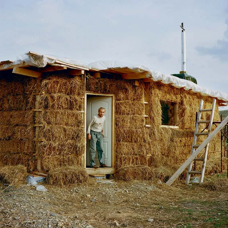 La promenade se poursuit dans « les Maquis » d’Antoine Bruy. « En 2005, ce jeune photographe est parti à travers toute l’Europe en stop. Entre quête initiatique et envie de voyage, il a, au fil du temps et au hasard des rencontres, collecté des morceaux de quotidien de personnes ayant sciemment fui les villes et une certaine société mue par la consommation et le développement », explique Jérôme Sother, directeur artistique de GwinZegal. « Il nous parle de ces néo-ruraux qui repeuplent des anciennes fermes, des campagnes désertées, et se lancent dans des constructions originales, entre matériaux de récupération et réduction de consommation d’énergie… » Il y a dans ces photos de la poésie, parfois presque une portée fantastique.