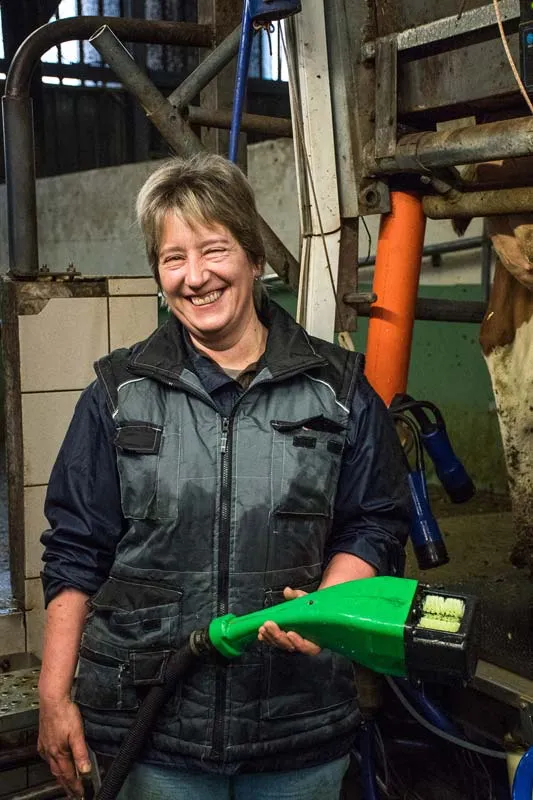 Grâce à l’installation d’un appareil à brosses pour nettoyer les trayons, la traite est plus rapide et plus d’une heure de travail par jour est économisée grâce à l’abandon des lavettes.