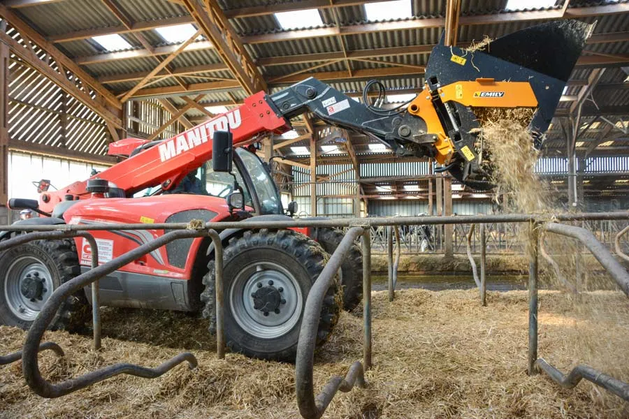 Le Multi’dis sait aussi se rendre polyvalent, car Claude Sergent l’utilise « pour apporter du maïs à un petit lot de génisses. Je pense aussi leur amener de la paille broyée ». Dans les autres systèmes d’élevage, le petit godet s’adapte aux copeaux, à la sciure ou au sable, et dispose d’un panel d’options, comme des mâchoires hydrauliques pour faciliter le chargement, un ameneur rotatif pour améliorer la distribution de paille ou encore une ouverture latérale des trappes hydrauliques.