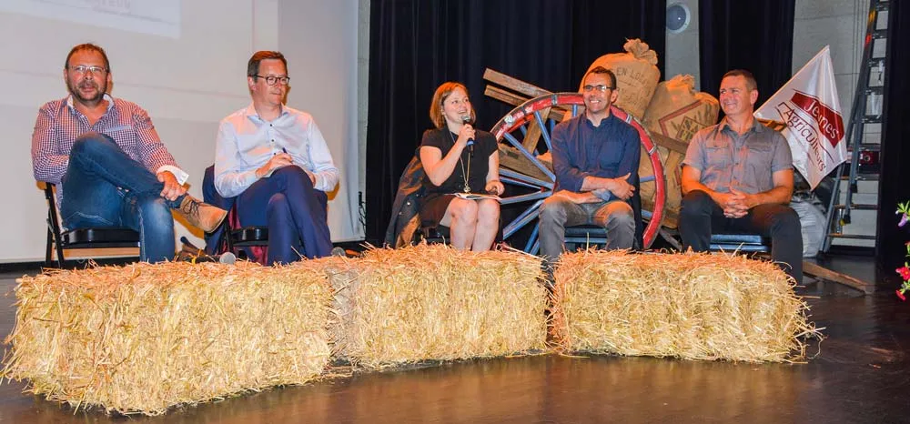 Les consommateurs veulent des produits sains, respectueux de l’environnement, du bien-être animal… Outre les démarches qualité, la communication directe entre les agriculteurs et les citoyens est à renforcer. « Mettons les pieds dans le plat », ont proposé les Jeunes Agriculteurs lors de leur traditionnelle soirée-débat organisée en amont de la Fête de l’agriculture. Cette année, ils ont décidé de se pencher sur le thème de la santé dans l’assiette. Face à la montée en puissance des logos, labels, signes de qualité d’une part, et les vidéos d’élevage, la chute de consommation des produits animaux d’autre part, les agriculteurs s’interrogent. La question du retour de la valeur ajoutée est un autre point crucial. Davantage d’oméga 3 « Représentant 68 % de nos apports en protéines et 50 % en lipides, les produits animaux sont essentiels aux omnivores que nous sommes. Ils contiennent des nutriments indispensables, dont certains comme la vitamine B 12 qu’on ne trouve pas dans les végétaux », a introduit Aude Gaillard, du service éco-nutrition de Bleu-Blanc-Cœur. L’entreprise basée à Combourtillé (35) développe une démarche de filière pour une agriculture à vocation santé, en lien avec un cadre scientifique solide. Elle vise notamment à rééquilibrer le profil des acides gras dans l’alimentation humaine, en augmentant la teneur en oméga 3 qui baisse dans les œufs, les laitages, les viandes depuis les années 60. « Aujourd’hui, nous ne consommons que le tiers de nos besoins en oméga 3 », précise Jean-Luc Ménard, technicien chez Eurial. La coopérative développe la marque Agrilait qui respecte le cahier des charges Bleu-Blanc-Cœur. « Au printemps, les vaches mangent de l’herbe, et en automne / hiver, elles sont complémentées avec des graines de lin. Les producteurs sont rémunérés en fonction de la teneur en omega 3 du lait. » « Nos filières permettent aussi de réduire les émissions de méthane », complète Aude Gaillard….
