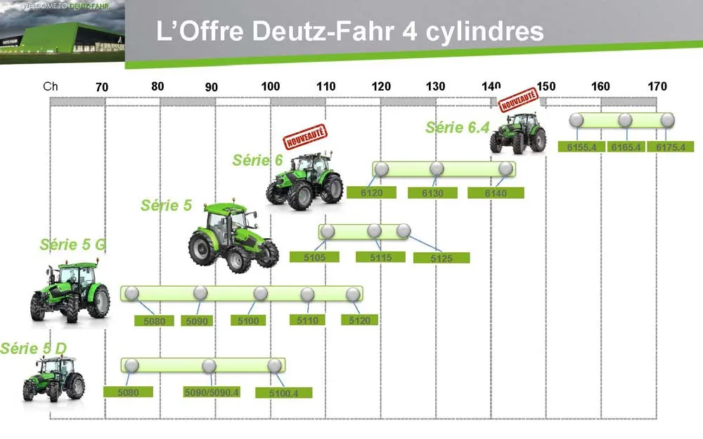 Toutes les infos techniques de cette série sont disponibles dans deux brochures fournies par le constructeur : Deutz-Farh-6120-6130-6140-TTV.pdf et Deutz-Fahr-serie-6-2017.pdf