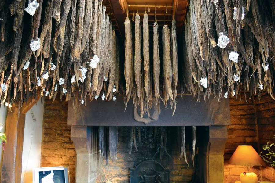 « Nous avons une spécificité sur notre andouille, à l’abattoir, le chaudin est passé dans une parmentière (machine utilisée pour éplucher les pommes de terre) afin d’enlever les gros morceaux de gras et d’attaquer le boyau ce qui facilite le passage de la fumée à travers les différentes couches de chaudin », explique Benoît Rivalan. Cette technique engendre une perte de poids plus importante sur l’andouille finie. « Il faut choisir entre avoir du goût ou avoir du poids mais on ne peut pas avoir les deux. » À l’arrivée avec 3 kg de matière première on obtient une andouille de 600 g après 2 semaines de séchage et 400 g après 9 mois de séchage.