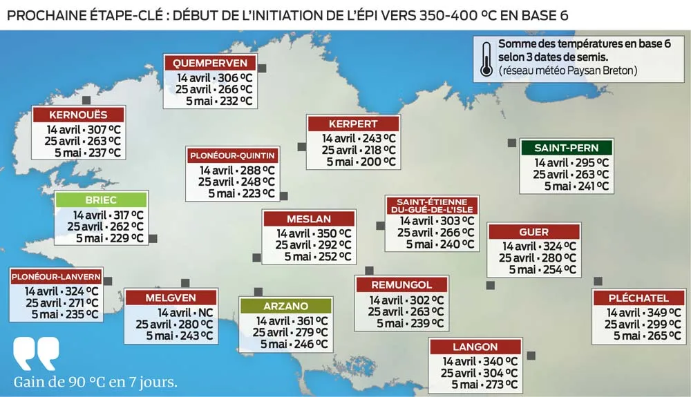 Ce stade est important dans la croissance du maïs : le peuplement (nombre de plantes/ha) est quasi définitif, l’exposition des plantes aux ravageurs de début de cycle (limaces, mouches, taupins…) est beaucoup plus faible, même si quelques cas – anecdotiques par rapport à l’année dernière en ce qui concerne la mouche du semis – ont été recensés sur le réseau du Bulletin de santé du Végétal (BSV). C’est également le début possible des carences (les difficultés d’assimilation du phosphore peuvent être marquées par une coloration rouge/violette). Notons aussi qu’à partir de ce niveau du développement végétatif, le bourgeon terminal passe au-dessus de la terre, rendant le désherbage mécanique plus délicat.