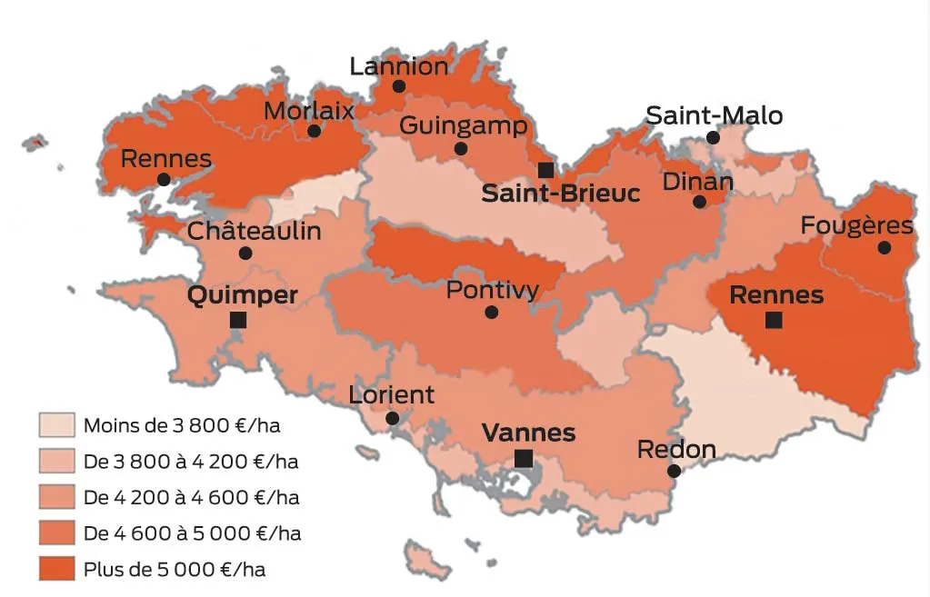 Un prix moyen des terres à 5 780 €/ha en Bretagne
