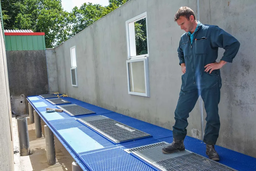 Après la restructuration de l’élevage de 165 truies, l’ensemble des porcelets sera élevé sur place (75 % auparavant). La surface limitée à 15 hectares de SAU et le recours à 4 prêteurs de terre pour épandre les effluents ont incité Benjamin Corre à équiper son nouvel engraissement d’un racleur. « Je voulais un autre engraissement pour élever tous les porcs. L’exportation de la partie solide me permet de limiter la surface d’épandage supplémentaire nécessaire à 18 hectares (38 ha sans racleur). J’ai trouvé cette surface chez un 5e prêteur ». Le surcoût de 150 € par place est à relativiser. « Je n’ai pas besoin de ventilation centralisée et d’un laveur d’air car il y a moins d’ammoniac (baisse de 40 %) et d’odeurs dans le bâtiment.