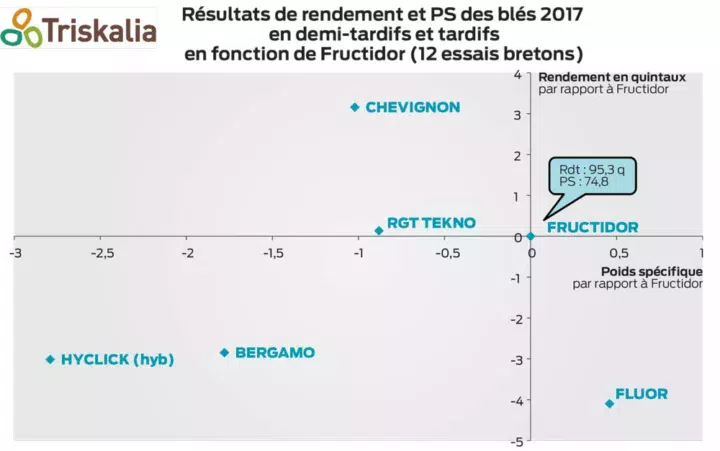 Elicsir, comme en 2016, est la 1re variété en rendement, avec un très bon PS. En plus de ces résultats, son bon profil maladies en fait une variété incontournable. Sur un créneau un peu plus précoce, RGT Oméac, nouveauté 2017, apporte un gain de PS de presque 6 points par rapport à RGT Eleac, tout en maintenant son potentiel.