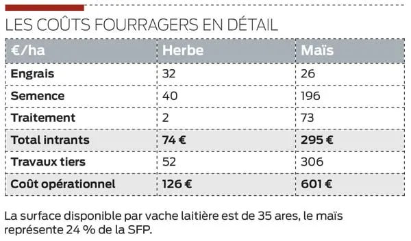 Pour les cultures, Jean-Luc Lossec fait confiance à son entreprise de travaux agricoles pour la préparation des sols et les semis de maïs. « 25 % des maïs sont implantés après pâtures longues, la fertilisation est donc égale à zéro. Les traitements sont aussi plus simples, pour un rendement optimum et un fourrage de qualité. La fertilisation azotée par ammonitrate est surtout réservée aux prairies de fauche, ou pour les parcelles vieillissantes contenant moins de trèfle ».