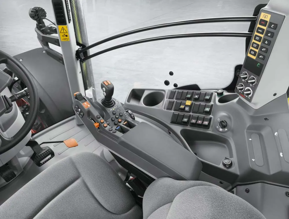 La nouvelle définition CEBIS reprend entre autres le nouveau terminal CEBIS à écran tactile haute résolution de 12 pouces et l’accoudoir ergonomique éprouvé avec levier multifonctions CMOTION pour une commande confortable de toutes les fonctions importantes avec le pouce, l’index et le majeur. L’accoudoir intègre également dix touches de fonction programmables, dont huit sur le levier multifonctions qui peuvent être par exemple affectées à différentes fonctions ISOBUS.