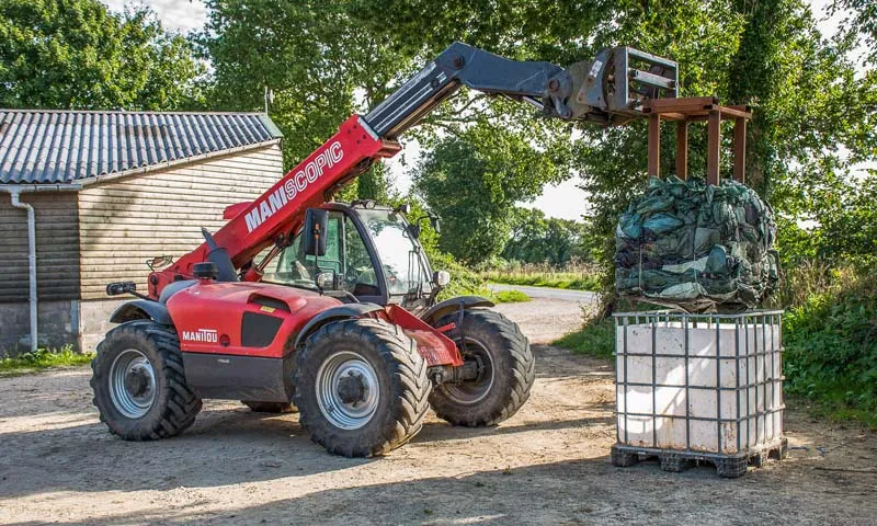 « C’était une corvée d’entasser les plastiques d’enrubannage dans des big-bags, remplis en 4 jours, pour les amener au recyclage… C’était volumineux et lourd à manipuler », se rappelle Michel Gourvil. Désormais, c’est plus simple. « J’ai repris le système d’un éleveur de Normandie vu sur internet. Dans une cuve de mélasse ouverte sur le dessus, je place 4 ficelles que j’accroche sur les côtés. Ensuite, on ajoute tous les jours les films d’enrubannage et les bâches de silo. Tous les 8 à 10 jours en hiver, on tasse ces matériaux avec l’outil accroché au bras du télescopique. » Quand la cuve est pleine, toutes les 2 ou 3 semaines, les ficelles sont nouées sur les plastiques amassés qui forment un cube compact de 200 kg. Un conditionnement propre repris au chargeur, « sans effort physique ».