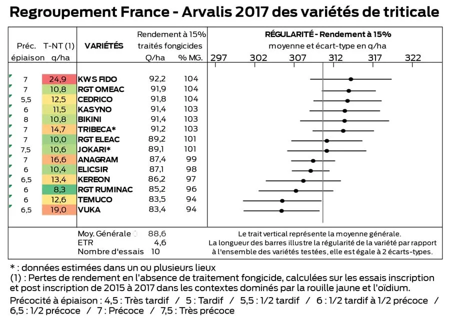 Pour la prochaine campagne, 3 variétés nouvelles font leur apparition sur le marché français (Kasino, RGT Omeac et Temuco). Kasino et RGT Omeac apportent du potentiel, mais Temuco déçoit. Ces nouvelles variétés viennent compléter le panel variétal qui s’était étoffé avec Anagram, Elicsir, Jokari en 2015 et Bikini, Cedrico, RGT Eléac et RGT Ruminac en 2016. La sensibilité des variétés à l’oïdium et à la rouille jaune doit être prise en compte sur cette espèce sensible à ces 2 maladies. Vuka et Tribeca confirment leur forte sensibilité à l’oïdium très présente en 2017.