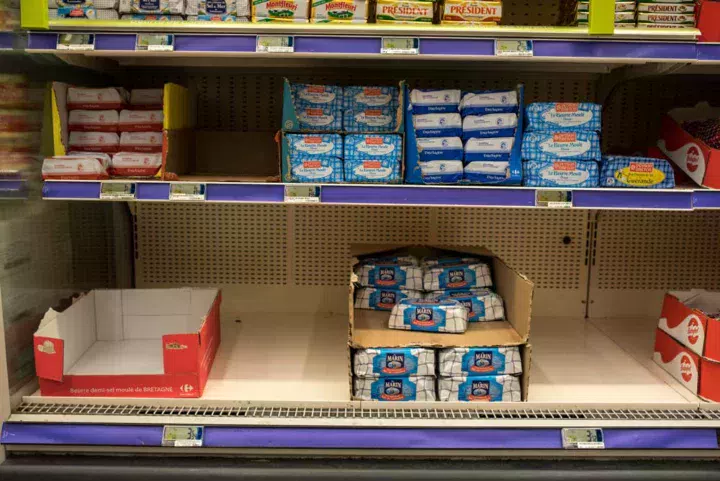En Allemagne par exemple, ce problème n’existe pas : le prix du beurre a augmenté de 50 % depuis le début de l’année, collant à la réalité du marché. » Les syndicalistes estiment que le secteur des GMS ne veut pas se risquer à envoyer un signe à la hausse alors que la période annuelle des négociations commerciales est sur le point de s’ouvrir… La situation pourrait rester particulièrement tendue et certaines références absentes des rayons alors que « l’hiver et les fêtes de fin d’année sont une période de forte consommation de beurre », avouait le responsable de magasin.