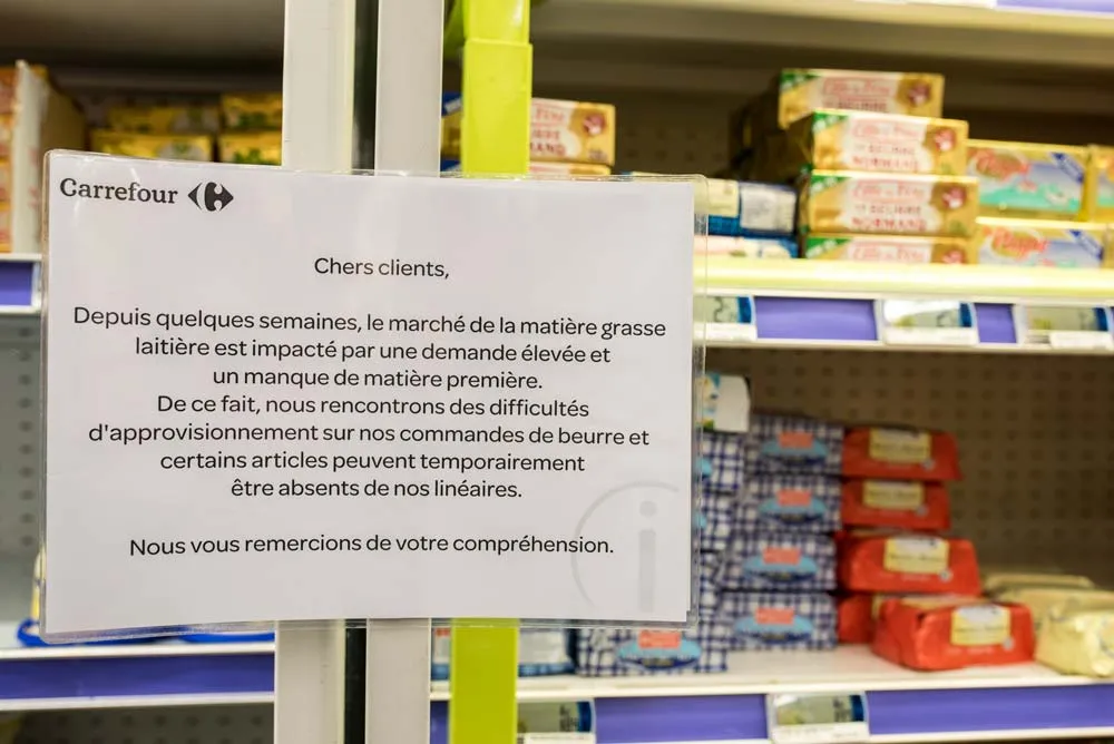En Allemagne par exemple, ce problème n’existe pas : le prix du beurre a augmenté de 50 % depuis le début de l’année, collant à la réalité du marché. » Les syndicalistes estiment que le secteur des GMS ne veut pas se risquer à envoyer un signe à la hausse alors que la période annuelle des négociations commerciales est sur le point de s’ouvrir… La situation pourrait rester particulièrement tendue et certaines références absentes des rayons alors que « l’hiver et les fêtes de fin d’année sont une période de forte consommation de beurre », avouait le responsable de magasin.