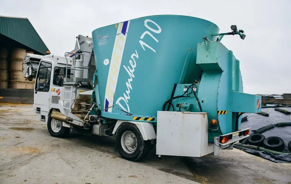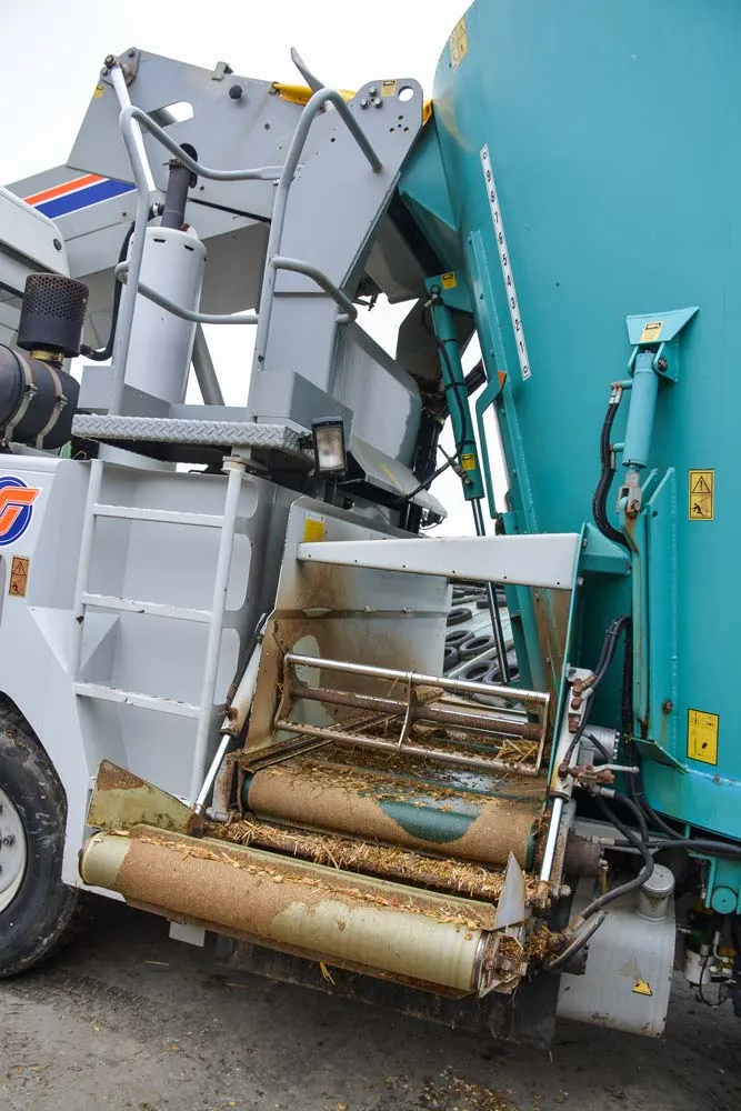 Pour valoriser au mieux ses fourrages, le producteur a investi il y a 2,5 ans dans une mélangeuse pailleuse automotrice d’occasion (de marque Storti). « Elle est équipée d’un bol mélangeur à vis verticale (17 m3) et d’une soufflerie pour le paillage. Un aimant rotatif enlève les corps métalliques. Une cuve permet d’incorporer de l’eau ou de la mélasse. » Lorsque le producteur l’a achetée, la machine affichait 3 200 heures de fonctionnement. Révisée, elle lui est revenue à un peu plus de 56 000 €. « Je fais 500 h/an avec. »