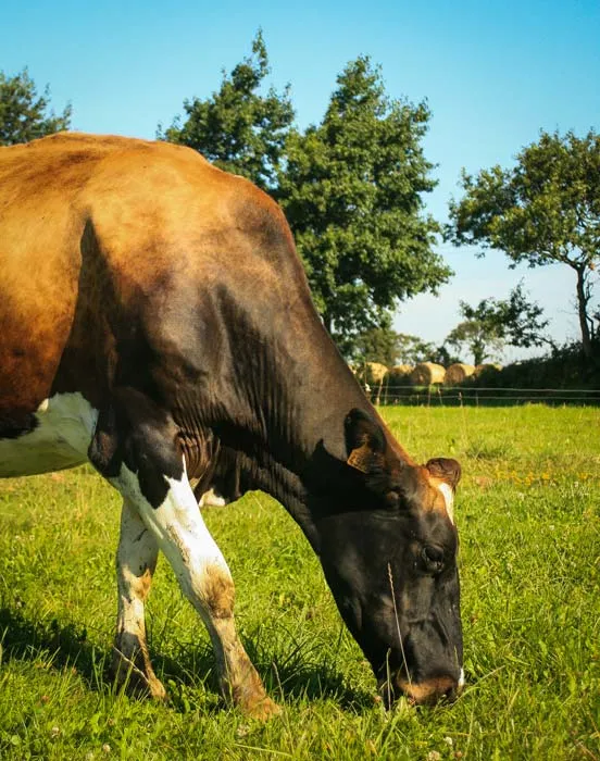 Aux confins du Trégor et des Monts d’Arrée, à Guerlesquin, je suis installé avec mon père depuis 2007. Nous conduisons un troupeau de 60 Normandes en race pure, sur 100 ha, en agriculture biologique (depuis 2013). 15 à 18 ha sont consacrés aux céréales, le reste de la surface étant en prairies (dont 57 ha sont accessibles aux vaches laitières). Après les pluies abondantes (600 mm depuis début décembre), les vaches ont commencé le déprimage des prairies la semaine dernière. En plus de l’herbe pâturée, on leur distribue 10 kg MS de foin séché en grange et 2 kg de maïs écrasé. La production de lait est de 16 L/ VL avec un TB à 44,3 et un TP à 34,9.