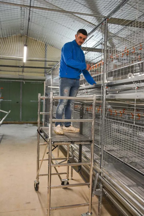 Les poulettes sont élevées pendant 17 semaines avant leur transfert chez le producteur d’œufs. Les éleveurs tablent sur 2,4 lots par an avec un vide sanitaire de 3 semaines entre chaque lot. « Le travail va être différent qu’en poussinière au sol. Il faut passer du temps à éduquer les poulettes et venir les coucher le soir. De leur arrivée jusqu’à 4 ou 5 semaines elles vont rester dans la volière. Ensuite, on ouvre pour qu’elles évoluent dans les couloirs. L’étape suivante est l’ouverture de l’accès sous les volières pour qu’elles occupent la totalité de l’espace », explique Bruno Le Parc.