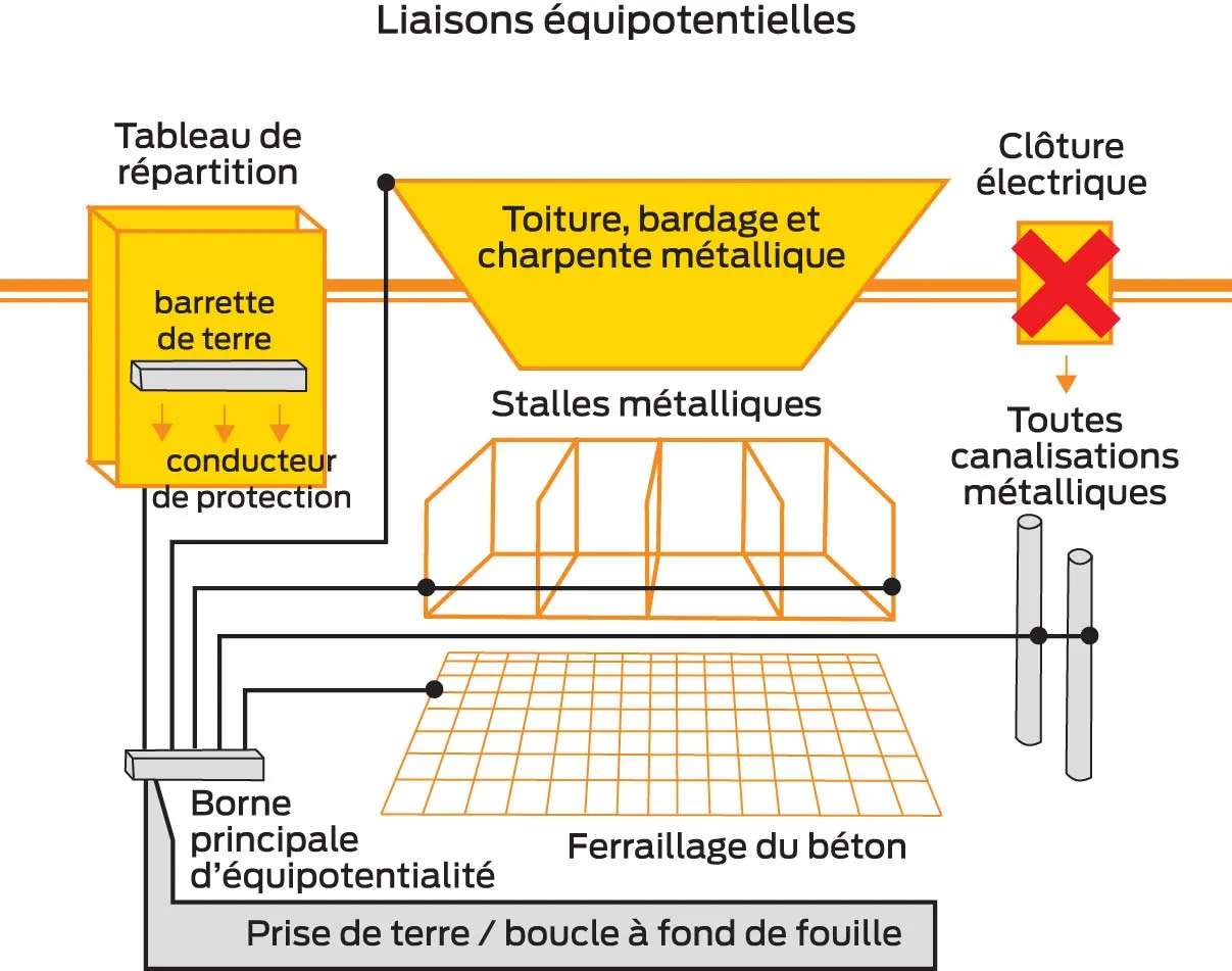 Les nombreux équipements électriques et électroniques favorisent les phénomènes parasites sur les exploitations. D’où l’importance de réaliser une liaison conductrice entre tous les éléments métalliques reliés à une prise de terre efficace.