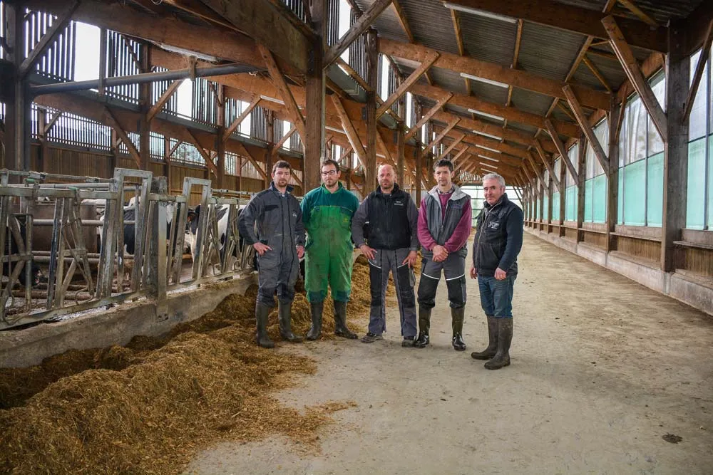 Les 200 vaches en production du Gaec de la Perrière, aint-Léger-des-Prés (35) , sont toutes abritées dans le même bâtiment. L’ambiance est saine sous le « toit d’usine » qu’ont choisi les 5 associés.