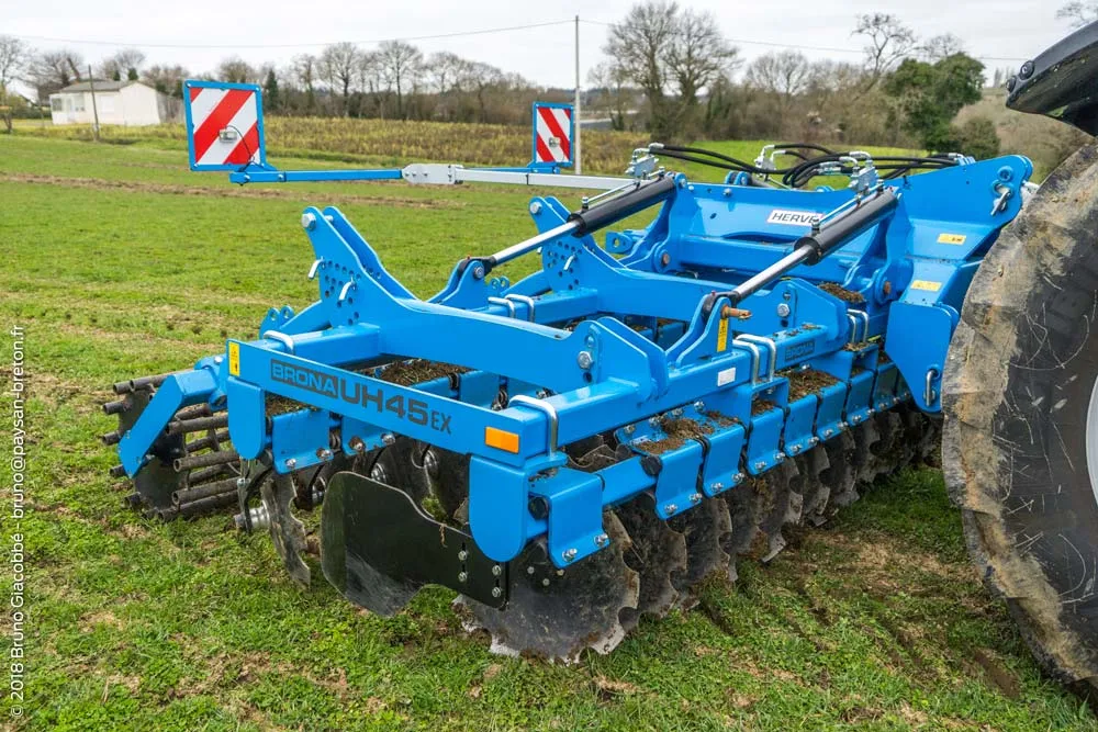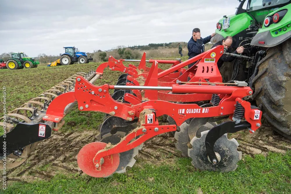Le déchaumeur QuadrX du constructeur breton Labbé Rotiel arbore un design différent des modèles concurrents. Conçu pour passer dans des grosses végétations, l’outil affiche un écart entre les 2 rangées
