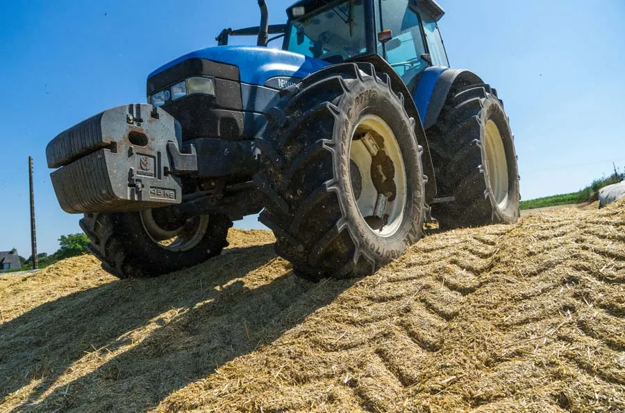 P. H. : Par rapport aux années précédentes, nous faisons une récolte « moins verte » car j’ai eu des soucis d’échauffement au début, ce qui nous obligeait à avancer vite dans le silo. Avec une récolte plus sèche, je n’ai pas rencontré ce souci. Pour le tassage, la technique est strictement identique au maïs. Nous sommes deux à tasser, le silo est plus bas car la matière se dérobe plus facilement sous les roues du tracteur.