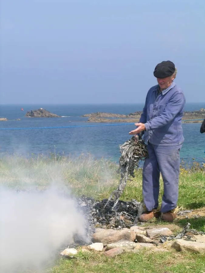 « Les algues récoltées à la main étaient déchargées des bateaux dans des charrettes tirées par des chevaux de trait breton. Elles étaient ensuite remontées de la grève pour être séchées, puis brûlées pour faire de la soude avant d’être livrées à l’usine où ils vont en extraire l’iode. « Vingt-cinq tonnes de laminaires fraîches donnent 5 tonnes sèches, cela fera 1 tonne de soude qui au final sera transformée en 15 kg d’iode. » Très souvent, les enfants descendaient très tôt le matin à la grève pour aider leurs parents à la récolte des algues avant d’aller à l’école.