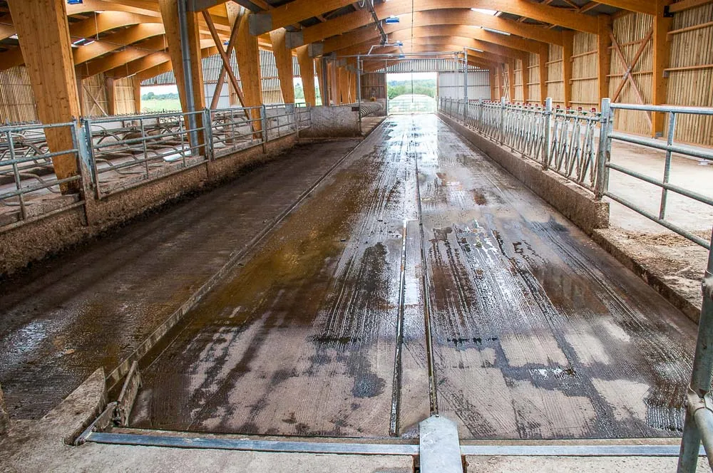 L’ensemble du projet a coûté environ 800 000 €, tout compris (terrassement, bâtiment, fosse, salle de traite, nurserie…), dont 51 000 € d’aides au titre du PCAEA. Cette enceinte a été réfléchie pour offrir « de bonnes conditions de travail ». Pour gagner du temps, l’aire d’attente est conçue sur un couloir d’exercice et une zone qui aurait pu accueillir des logettes supplémentaires. « Ainsi, pas besoin de laver le parc puisque le racleur vient jusqu’à la salle de traite. Le pare-bouse et la stalle avec peu de poteaux intermédiaires vont également dans le sens d’un nettoyage plus rapide. »