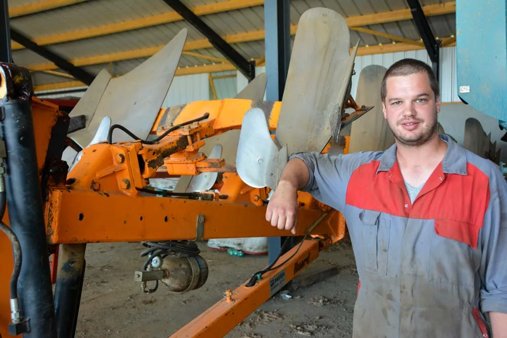 « Le labour est très technique et rigoureux, il faut parfaitement connaître les réglages de son outil », explique le jeune agriculteur. Pour les concours, il utilise une charrue bisocs, quelque peu modifiée. Equipé d’un corps télescopique, d’un déport hydraulique, de 2 paires de roues et d’une paire de disques, l’outil est taillé pour effectuer un travail propre et dans les règles de l’art.
