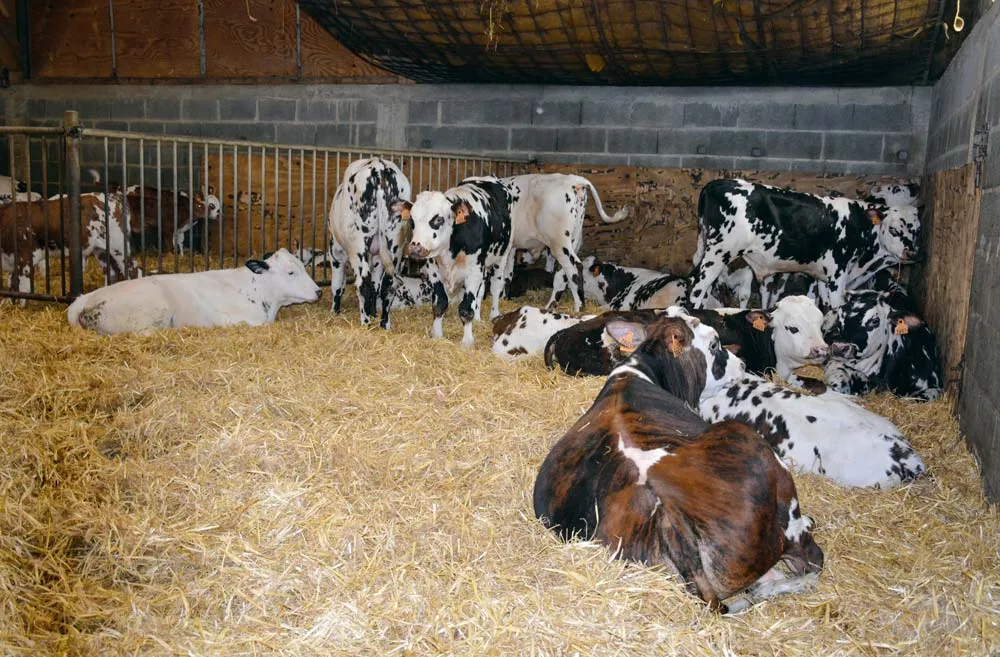 Le bœuf est vendu 11,50 €/kg au consommateur, le veau, 14,50 €/kg. La prestation de découpe est réalisée par TVR, la viande arrive emballée sous vide en colis de 10 kg. « Nous avons juste un frigo. Les gens viennent chercher leur colis sur la ferme. J’aime montrer comment les animaux sont élevés… » Séparés des femelles à la naissance, les mâles évoluent dans un bâtiment à part sur paille. Le lait est stocké dans un petit tank de 200 L et les veaux sont nourris au Dal. « Ils ont des puces pour gérer les quantités. Chaque veau consomme environ 1 600 L en quatre à six mois. Ils pèsent entre 130 et 160 kg de carcasse. »