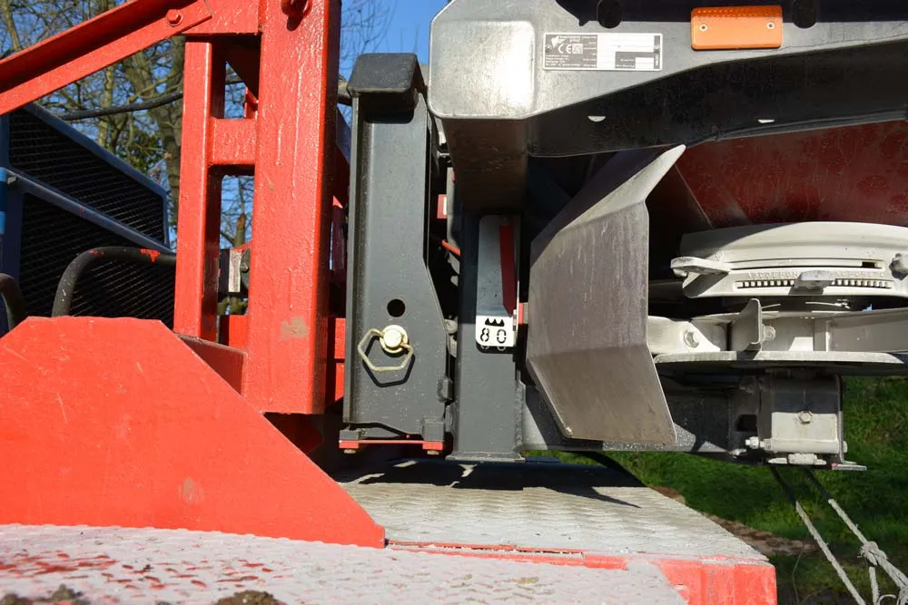 L’amateur de bonnes affaires s’est mis en quête d’une dameuse en parcourant les petites annonces sur Internet. « J’ai trouvé 2 dameuses tournantes dans une petite station de ski des Vosges qui renouvelait ses engins. Cela me permet d’en avoir une pour les pièces, car trouver des pièces ici à un prix raisonnable est impossible. J’ai acheté le tout 8 000 € et j’ai payé 2 500 € de transport pour les ramener chez moi. » L’épandeur à engrais Vicon équipé du GPS et du DPA (débit proportionnel à l’avancement) a été adapté sur la dameuse. Afin de pouvoir conserver le système de pesée de l’épandeur, la dameuse a été équipée d’un système 3 points comme sur un tracteur. Le train de chenille a été modifié pour passer de 1,7 m à 0,75 m de largeur. La modification du système hydraulique a permis de faire fonctionner l’épandeur. « La machine ne possédant pas de manuel descriptif, nous avons passé une semaine à 2 pour effectuer toutes les modifications », précise Éric Guillou.
