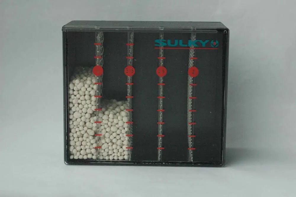 Si les données valables à chaque spécialité disponible sur le marché sont consultables sur Internet, et varient tous les ans, une vérification simple est aussi possible grâce à un granulomètre, petite boîte fournie avec le matériel. En tamisant une petite quantité d’engrais, des tamis successifs détermineront les parts d’éléments dont la taille est supérieure à 4 mm, entre 3,15 et 4 mm, entre 2,55 et 3,15 mm, ainsi que les éléments plus fins. Cette mesure est valable pour tous les aspects : granulés sphériques, prillés, granulés boursouflés, compactés ou cristallins.