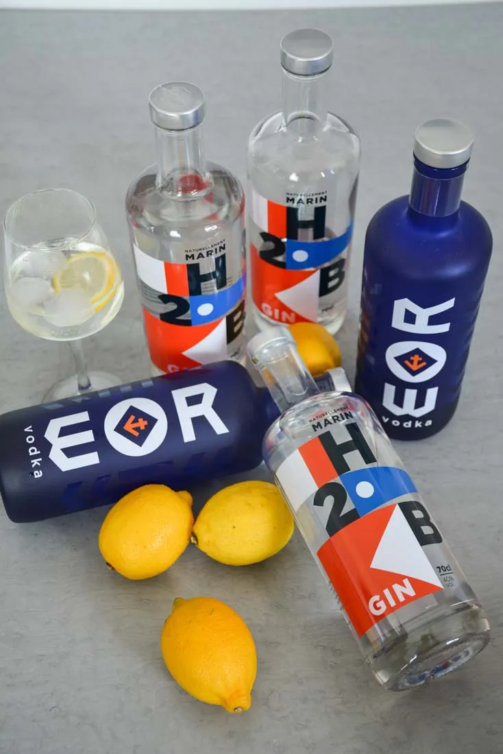 La nouvelle boisson s’appelle H2B. H comme Henri et B comme les deux Bertrand. Ces amateurs de voile se sont rencontrés lors de leurs études ou de leur expérience professionnelle dans les domaines de l’hôtellerie et du commerce des vins et spiritueux. « À l’origine, on voulait produire un whisky. Mais, contrairement aux alcools blancs, le whisky requiert un vieillissement de trois années au minimum. Un peu trop pour nos modestes économies ». Ce sera donc le gin, qui dès sa production, peut être commercialisé. Si le goût a une note marine, la bouteille n’est pas en reste. Son apparence, travaillée par l’agence Désigne de Rennes, impliquée sur le Vendée Globe, renvoie au code international des signaux maritimes. Sur une bouteille transparente, l’étiquette mentionne le sigle H2B et sa traduction en code alpha, bravo, charlie, sous forme de pavillons, flammes et triangles colorés… Rien n’a été laissé au hasard…