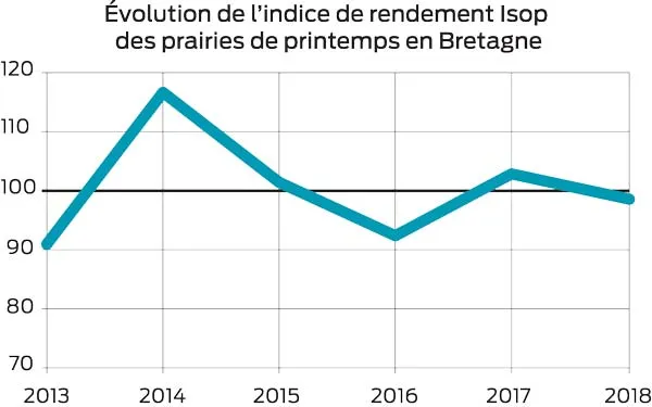 Selon la moyenne 2013-2017, la pousse de printemps assure 67 % de la production annuelle des prairies bretonnes. Celle effectuée au printemps 2018, sera a priori plus faible, avec 60 % de la production moyenne annuelle 2013-2017.