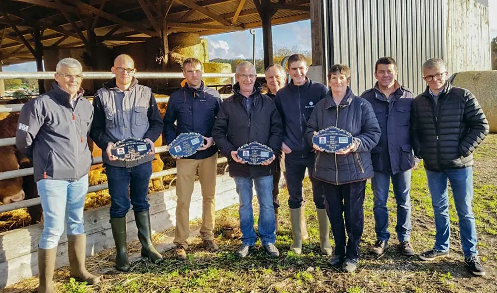« Sur les 250 éleveurs du GIE, 140 pouvaient prétendre à ces récompenses. Ce sont les éleveurs naisseurs engraisseurs ayant livré au moins 18 bovins entre 2015 et 2017. » Le classement est principalement établi à partir des résultats de conformation des animaux livrés dans la filière : les éleveurs récompensés ont livré entre 65 et 80 % d’animaux classés en U. Sylvain Boschat se positionne donc en première position du concours, suivi de l’EARL de Villejean (Yvon Le Goff) à Saint-Martin-des-Prés (22), puis de l’EARL du Guerclé (M. et Mme Bertrand) de Saint-Gildas (22) en 3e position. Yvon Le Goff qui vient de céder son exploitation était présent avec Olivier Boscher, son jeune repreneur de 25 ans.