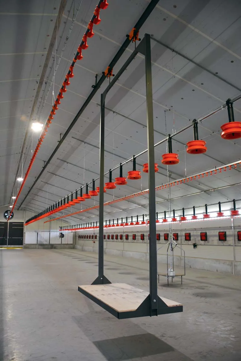 L’éleveuse de volailles a choisi d’investir dans un poulailler de type Compbat de 1 800 m2 proposé par LDC pour pouvoir diminuer les coûts de la construction. « Le bâtiment Compbat est la compression des mots compétitivité et bâtiment. Ces poulaillers respectent un cahier des charges défini par LDC : type de bâtiment, conception, qualité du matériel, savoir -faire de l’entreprise, positionnement des trappes, des fenêtres… C’est une recherche de la technicité au meilleur coût pour l’éleveur. Ici l’investissement avoisine 246 €/m2 (hors terrassement, photovoltaïque et raccordement eau/électricité /gaz) avec l’option sol bétonné et pesage des silos », précise Jean-Lou Le Guellec, animateur technique pour Huttepain Bretagne. Les constructeurs et autres fournisseurs d’équipement ou de matériel d’élevage avicoles répondent à un appel d’offres pour fournir autour de 30 000 m2 par an ce qui permet de négocier les prix avec toutes les entreprises sélectionnées. « L’éleveur peut faire différemment s’il le souhaite, mais ce bâtiment est une bonne solution pour du clé en main. »