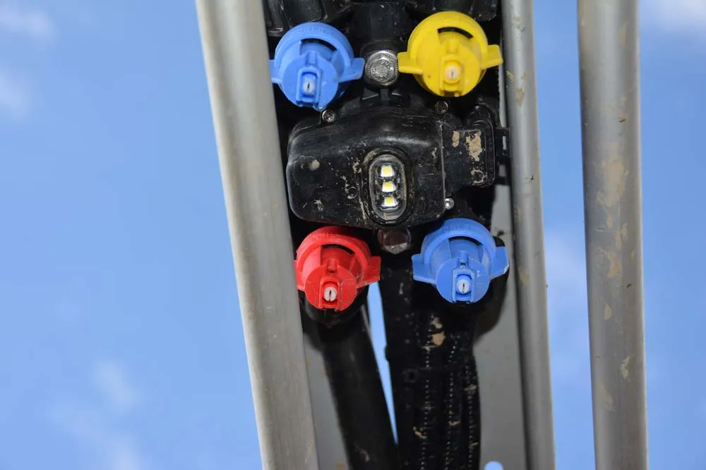 La firme conceptrice fait gagner en sécurité pour l’utilisateur grâce au système AmaSelect : plus besoin de venir manipuler les buses de la rampe, un moteur électrique intégré dans le module propose au chauffeur de sélectionner entre 4 buses prémontées. « L’utilisateur peut aussi choisir une buse à injection d’air depuis la cabine si le vent se lève pendant la pulvérisation, pour lutter contre la dérive ». Suivant la pression d’utilisation de la buse et la vitesse d’avancement, le pulvérisateur va sélectionner la buse adaptée.