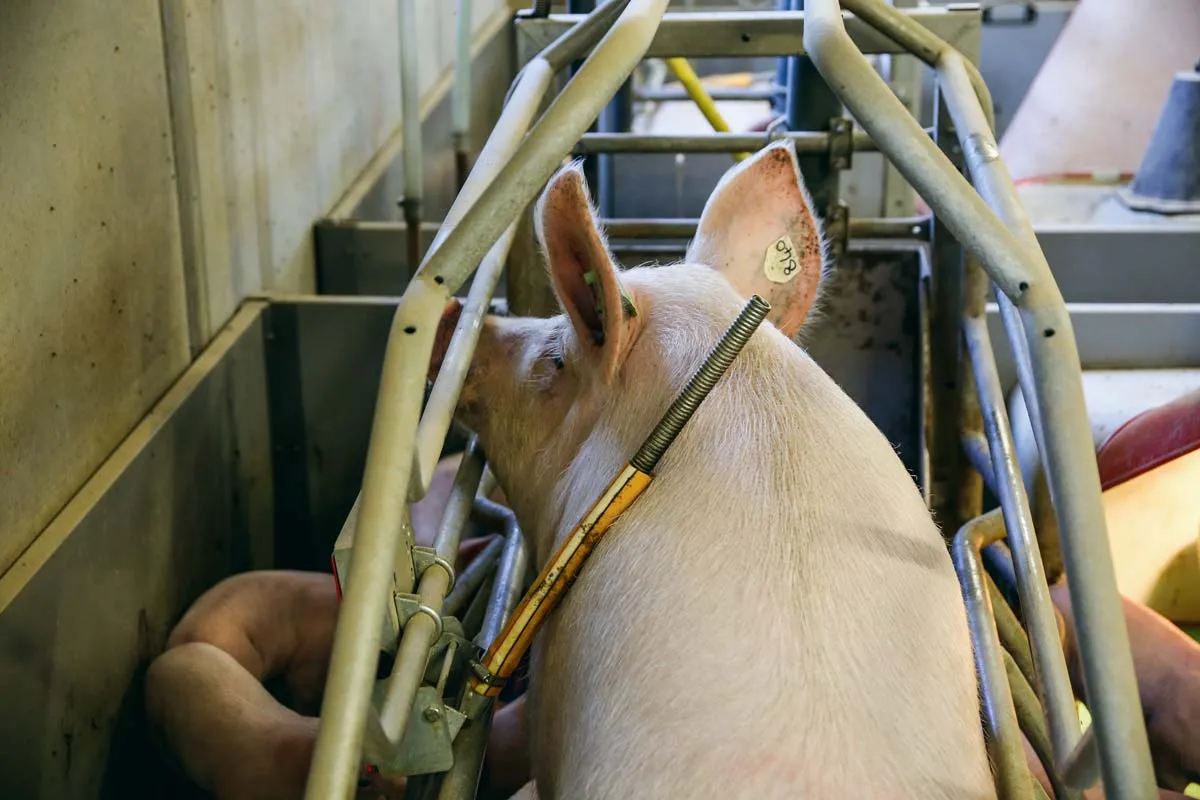 Les éleveurs ont opté pour des cages ascenseurs. La truie est installée sur un sol relevable monté sur vérins pneumatiques. Lorsqu’elle se lève, elle actionne une barre de commande reliée au circuit d’air comprimé pour le relevage. En quelques secondes, le sol sous la truie est automatiquement surélevé de 20 cm et les jeunes porcelets ne peuvent pas se trouver sous leur mère lorsqu’elle se recouche. Grâce à ce système, les éleveurs sont passés de 0,9 porcelet écrasé par portée (avant travaux) à 0,1 porcelet. À l’échelle d’une bande, ceci représente environ 40 porcelets sauvés. « L’effet a été immédiat », affirme Emmanuel Lemercier. « Les cages facilitent aussi notre travail lors des soins. Nous pouvons manuellement relever la cage des truies et ainsi rendre les porcelets accessibles », ajoute-t-il.