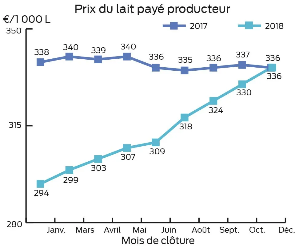 Alors que les marchés laitiers s’améliorent, les éleveurs doivent faire face à une hausse des coûts de production. Le prix du lait devra rester élevé en 2019 pour que les éleveurs dégagent de la rentabilité.