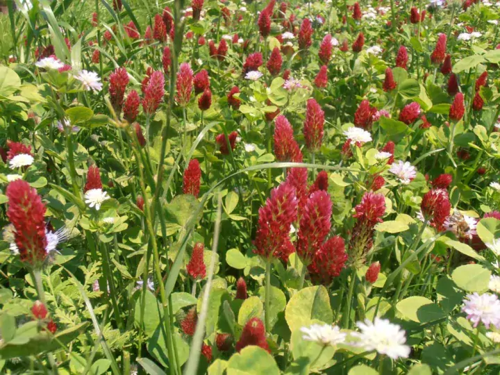 Il ne faut pas oublier les légumineuses annuelles qui sont utilisables soit en interculture multi service (agronomique, cynégétique, mellifères), soit en cultures dérobées fourragères. Deux légumineuses dominent pour ces deux situations : le trèfle incarnat qui résiste à l’hiver et le trèfle d’Alexandrie qui lui est gélif. L’incarnat gazonne à l’automne et ne convient alors qu’au pâturage, puis monte et fleurit au printemps. Il peut alors être fauché ou pâturé. Le trèfle d’Alexandrie monte dès l’automne et peut alors être fauché ou pâturé, parfois 2 fois avant l’hiver. Il faut préciser que ces trèfles ne sont pas météorisant et peuvent donc être pâturés sans risques.